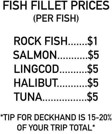 PLEASE KEEP IN MIND, DECKHANDS DO NOT GET PAID BY THE BOAT, THEY WORK STRICTLY FOR TIPS AND FISH CLEANING.